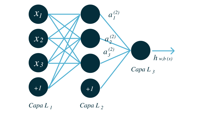 Las redes neuronales se construyen a partir de la agregación de perceptrones de distintos tipos en estructuras complejas. La estructura más sencilla se conforma de tres capas, una capa de entrada, una capa intermedia u oculta y una capa de salida.