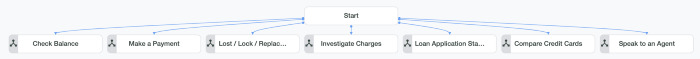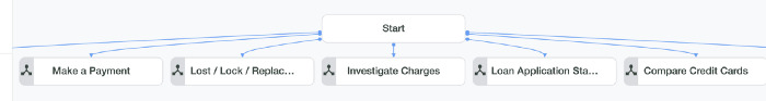 DialogFlow CX, una de las herramientas de diseño de conversaciones de Google, admite el zoom. Importé uno de sus agentes preconstruidos avanzados (Servicios financieros) y obtengo esto: