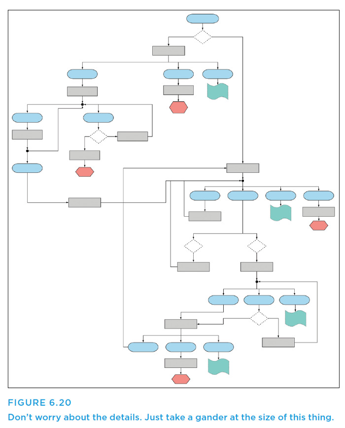 Se puede esperar que un diseñador, como un programador, almacene esa macroestructura en sus propias cabezas. Dicho esto, las herramientas que utiliza un diseñador de conversaciones pueden marcar la diferencia. ¿La plataforma de conversación admite el alejamiento para ver la estructura COMPLETA de la conversación a la vez? En caso afirmativo, ¿qué información es accesible desde esta visión amplia? En caso negativo, ¿qué se pierde al no tener acceso a esta visión amplia?